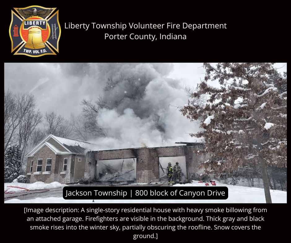 The Liberty Township Volunteer Fire Department is grateful for the assistance provided by our mutual aid partners during this incident and throughout the winter storm.
